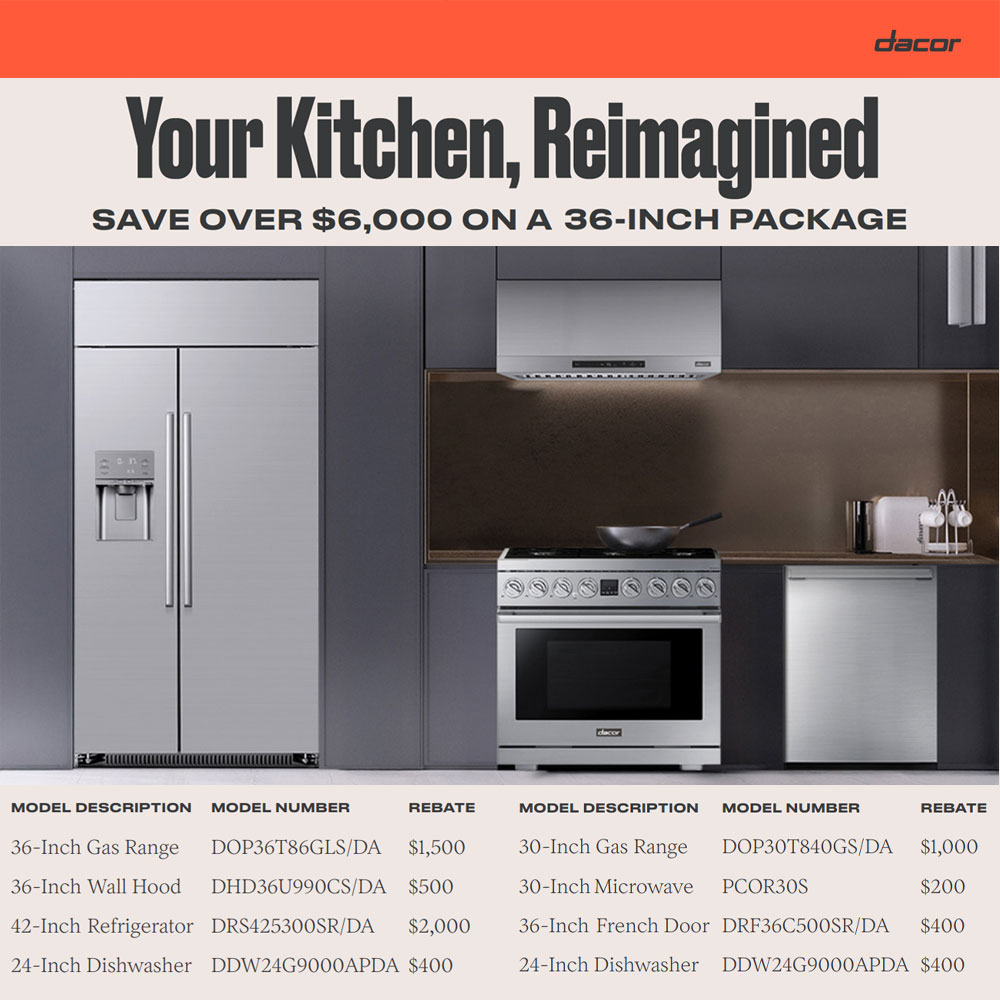 Offer valid on purchase of select new Dacor products from February 3, 2026, through December 31, 2026 where delivery must is taken by January 31, 2027.