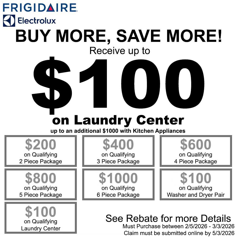 *Can be combined with the Frigidaire Electrolux NECO Kitchen Appliance Rebate (ALL PRODUCTS MUST BE ON ONE INVOICE)