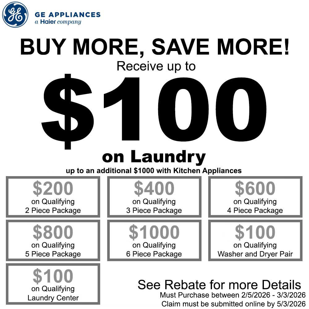 *Can be combined with the GE NECO Kitchen Appliance Rebate (ALL PRODUCTS MUST BE ON ONE INVOICE)
