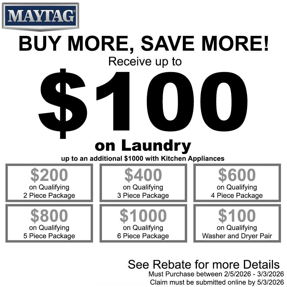 *Can be combined with the Maytag NECO Kitchen Appliance Rebate (ALL PRODUCTS MUST BE ON ONE INVOICE)